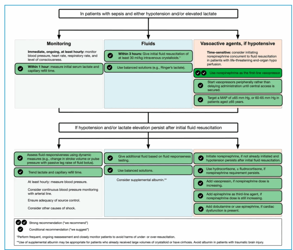 🩸 图 3:成人脓毒症及感染性休克复苏与血流动力学支持速览