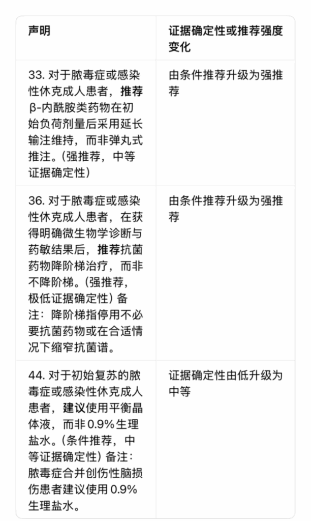3. 抗菌策略升级:β-内酰胺延长输注、降阶梯由条件推荐升级为强推荐。